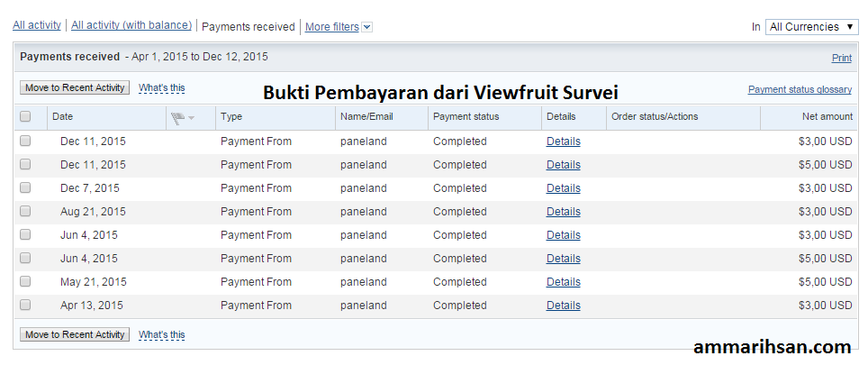 So, disini intinya admin mau ngasih tau kalau mengisi survei di viewfruit itu memang asli dibayar, bukan penipuan. Bisa dilihat bukti pembayaran mereka ke akun paypal admin dibawah ini. (klik untuk memperbesar gambar)