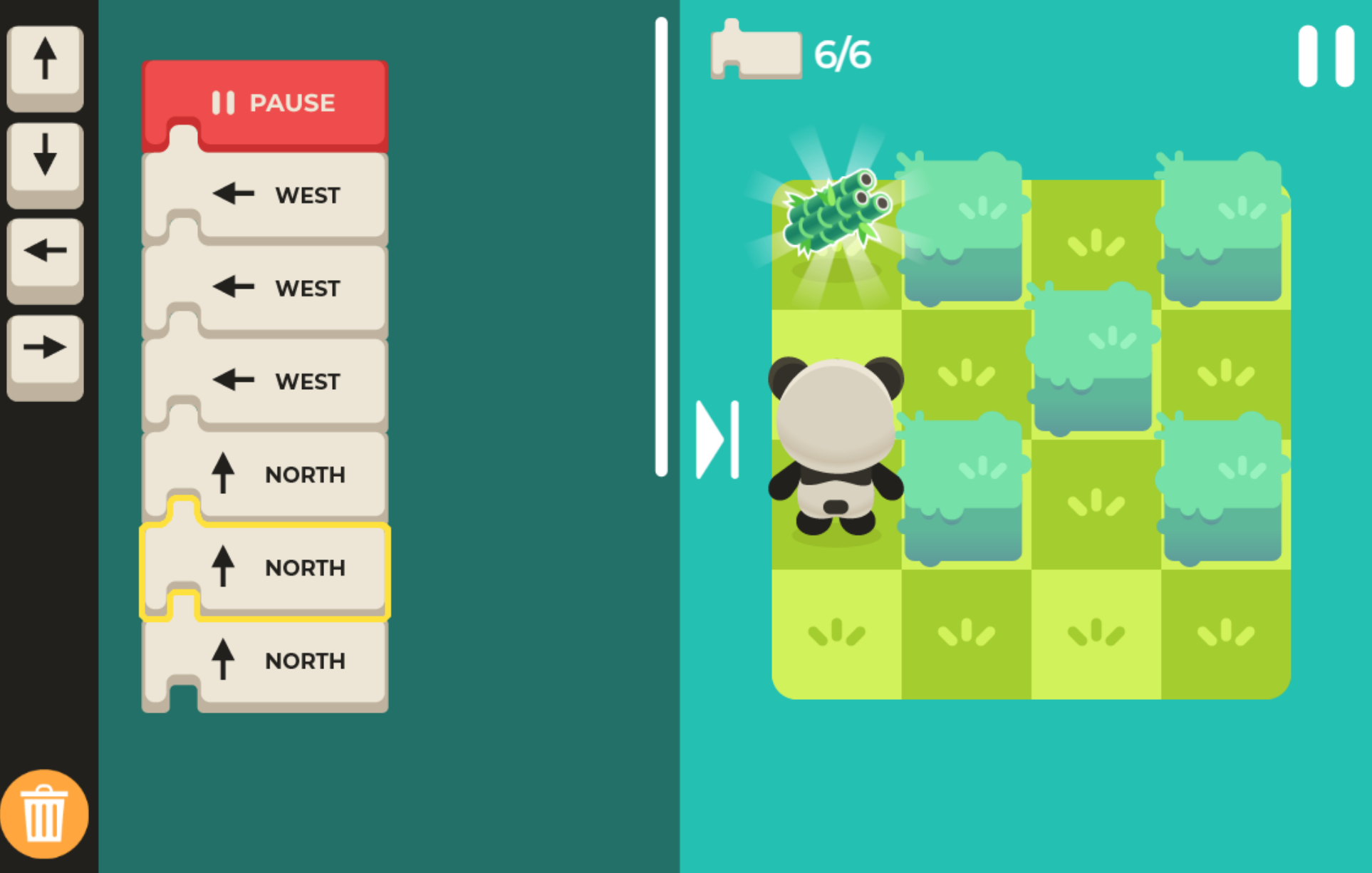 Disini, kita diminta untuk menunjukkan jalan yang benar untuk si panda mencapai makanannya. Apakah itu dua langkah ke atas, kanan, atau kiri. Dan perlu diingat juga loh, karena ketika memilih jalan, kolom panda di sembunyikan. Jadi semakin menarik dan semakin mengasah otak anak2 kita.